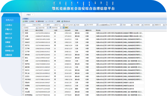 我司根據(jù)鄂托克前旗的實(shí)際工作需要,定制開(kāi)發(fā)了“社會(huì)治安綜合治理信息平臺(tái)”。平臺(tái)將轄區(qū)內(nèi)的所有網(wǎng)格分布情況、網(wǎng)格基本情況等都在GIS上進(jìn)行了可視化展示,達(dá)到了精細(xì)化的管理水平。