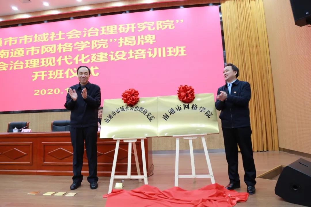 12月16日上午,南通市市域社會治理研究院、網(wǎng)格學(xué)院揭牌儀式暨首期市域社會治理現(xiàn)代化建設(shè)培訓(xùn)班開班儀式在南通市委黨校舉行。市委常委、政法委書記姜永華,市委黨校常務(wù)副校長、行政學(xué)院副院長蔣建為“兩院”揭牌。