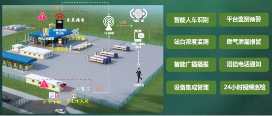 對(duì)場(chǎng)站的出入通行進(jìn)行嚴(yán)格的管控,借助人臉識(shí)別、車(chē)輛識(shí)別、視頻監(jiān)控等裝置對(duì)場(chǎng)站內(nèi)外人員車(chē)輛狀態(tài)信息進(jìn)行動(dòng)態(tài)管理;在二道門(mén)外借助LED顯示及廣播系統(tǒng),展示安全監(jiān)管信息、發(fā)布異常監(jiān)管數(shù)據(jù)、提示違規(guī)操作、播放違規(guī)企業(yè)信息及安全告知信息等;結(jié)合地理信息系統(tǒng),展示生產(chǎn)環(huán)境、使用環(huán)境中燃?xì)庑孤秷?bào)警及故障信息,報(bào)警信息包括安裝地點(diǎn)、詳細(xì)位置、設(shè)備狀態(tài)、報(bào)警時(shí)間等。結(jié)合報(bào)警處置情況,可綜合展示今日?qǐng)?bào)警及已處理情況、今日故障及已處理情況等。通過(guò)精細(xì)化的部署及監(jiān)管,使管理部門(mén)對(duì)場(chǎng)站運(yùn)行的實(shí)際情況得到充分了解,從而規(guī)避和降低可能發(fā)生的各類風(fēng)險(xiǎn)。